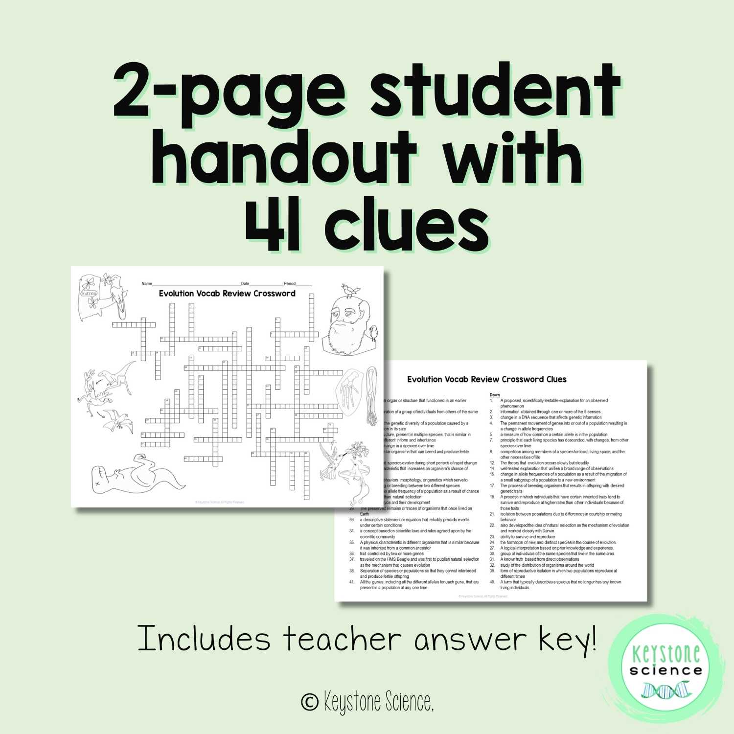 The Evolution Crossword includes 4 pages and features 41 carefully constructed clues to challenge and stimulate your students' recall of unit vocabulary. The doodles are not just for fun; they tie into the themes and keep students engaged with the content!